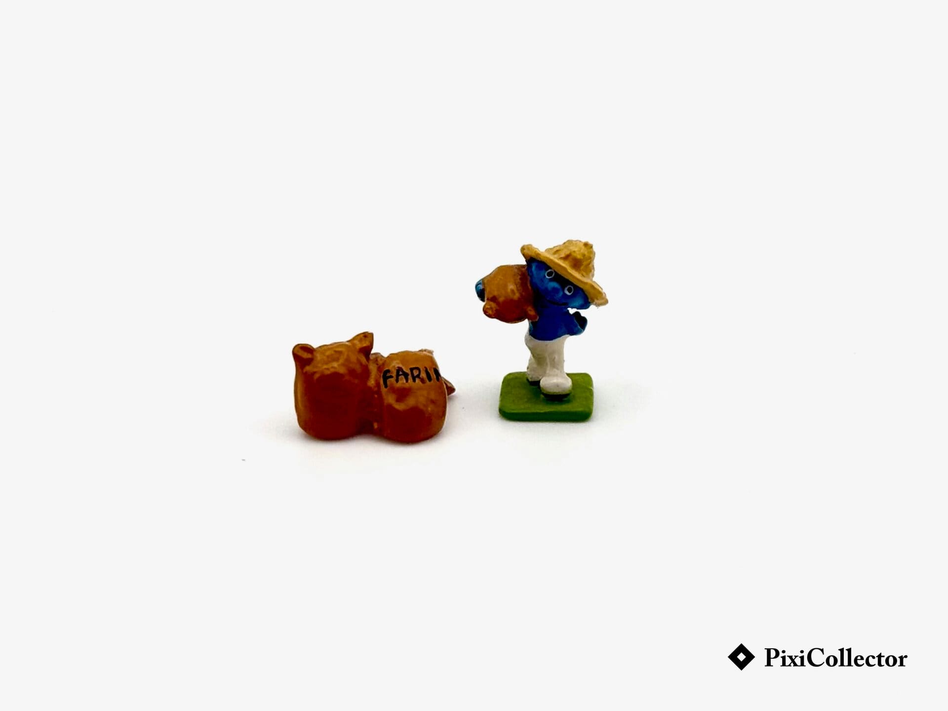 Cet ensemble Pixi représente un Schtroumpf avec des sacs de farine, pour une mise en scène de vie quotidienne.