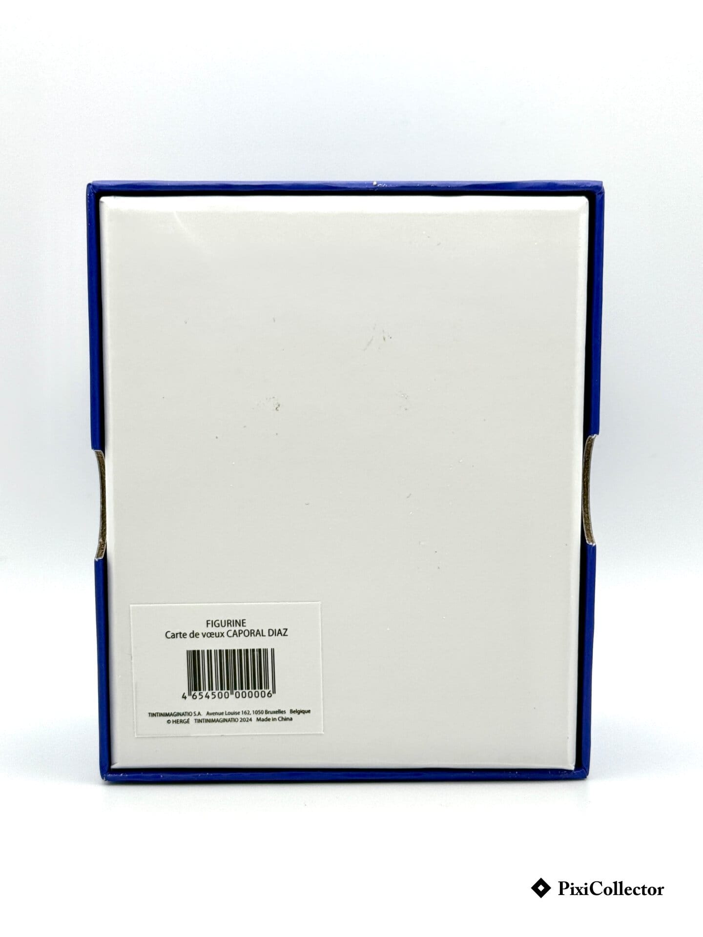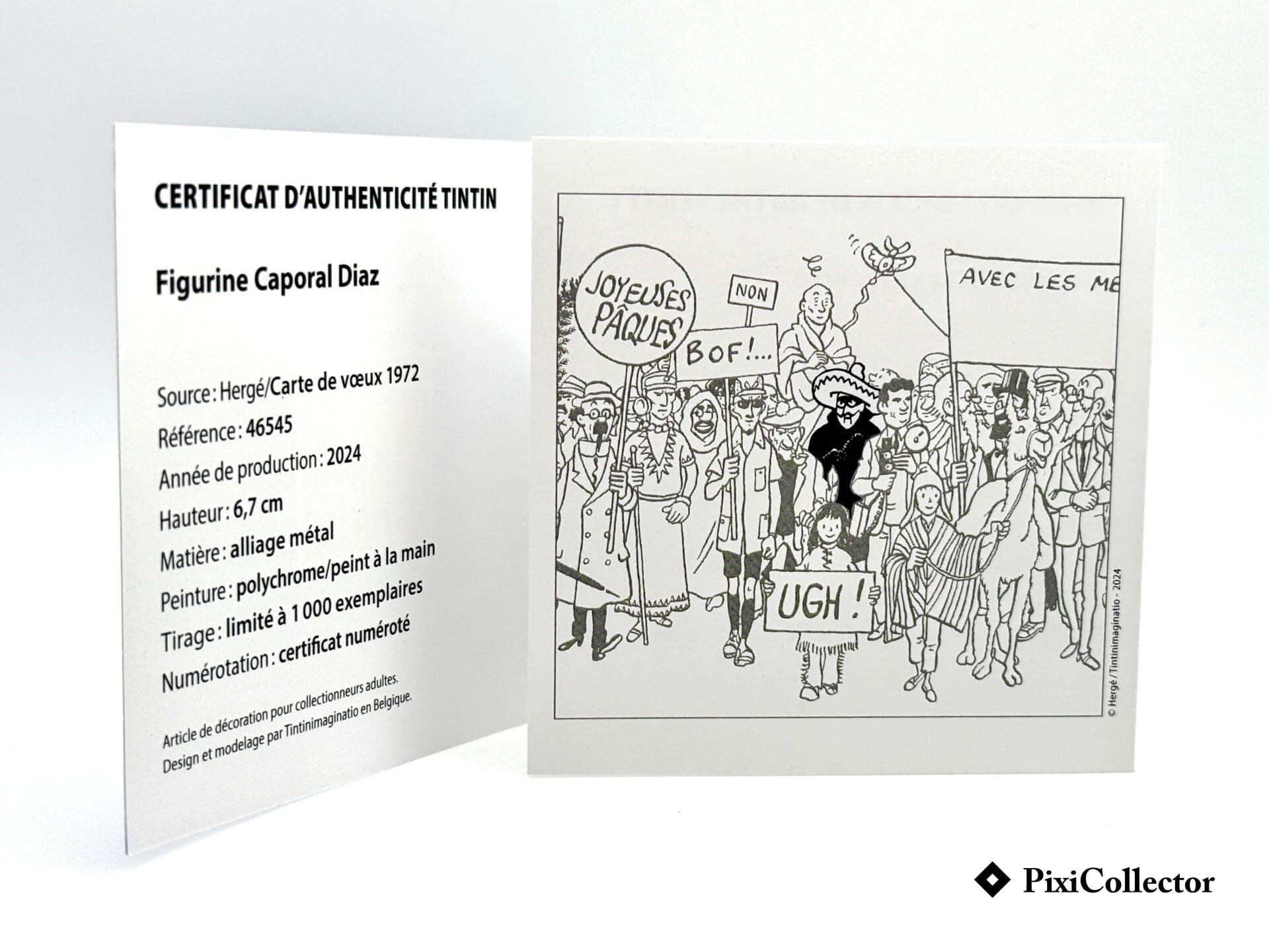 Cette figurine Pixi représente le Caporal Diaz, dans une mise en scène directement inspirée de la carte de vœux dessinée par Hergé au début des années 70.
