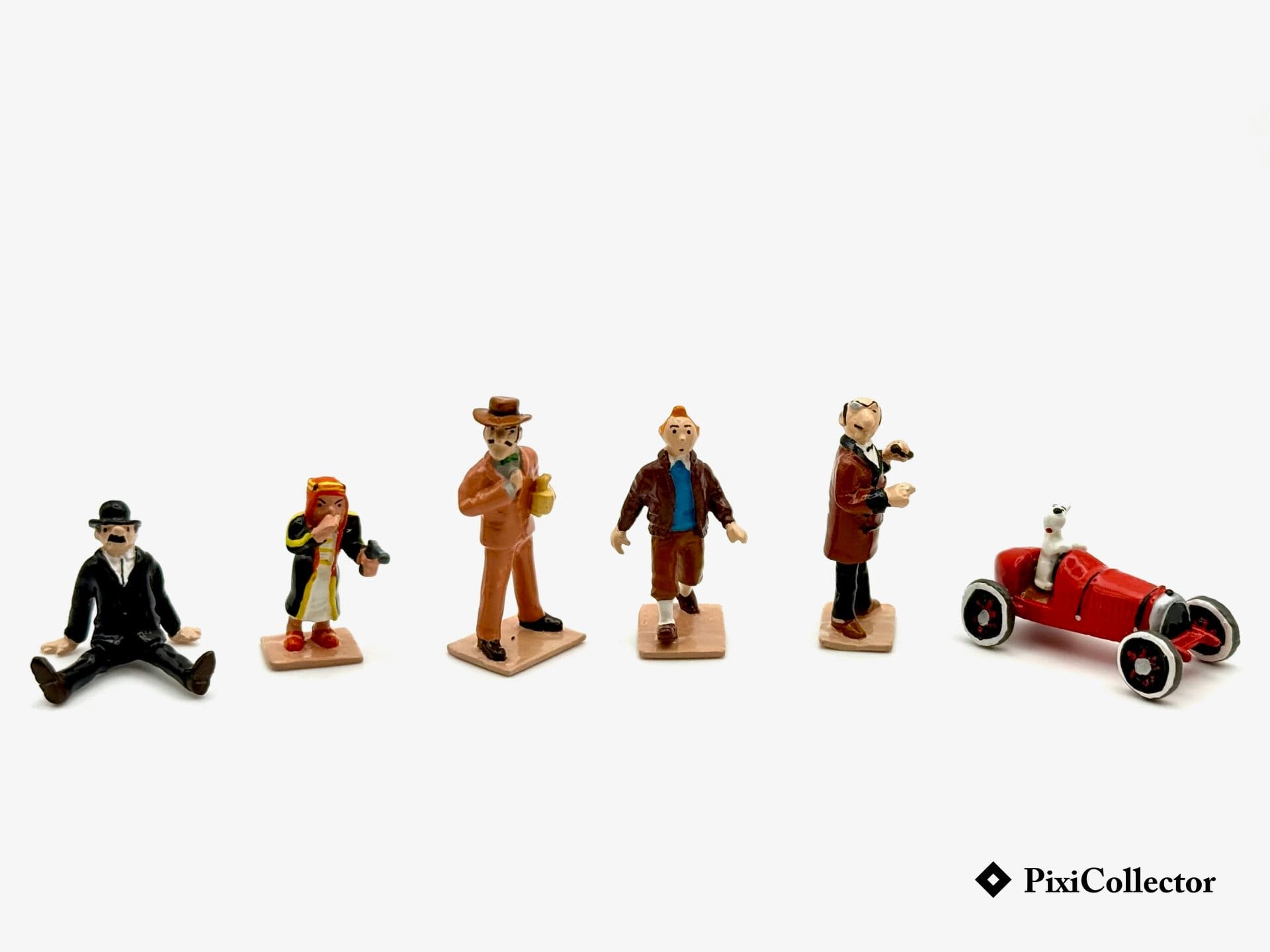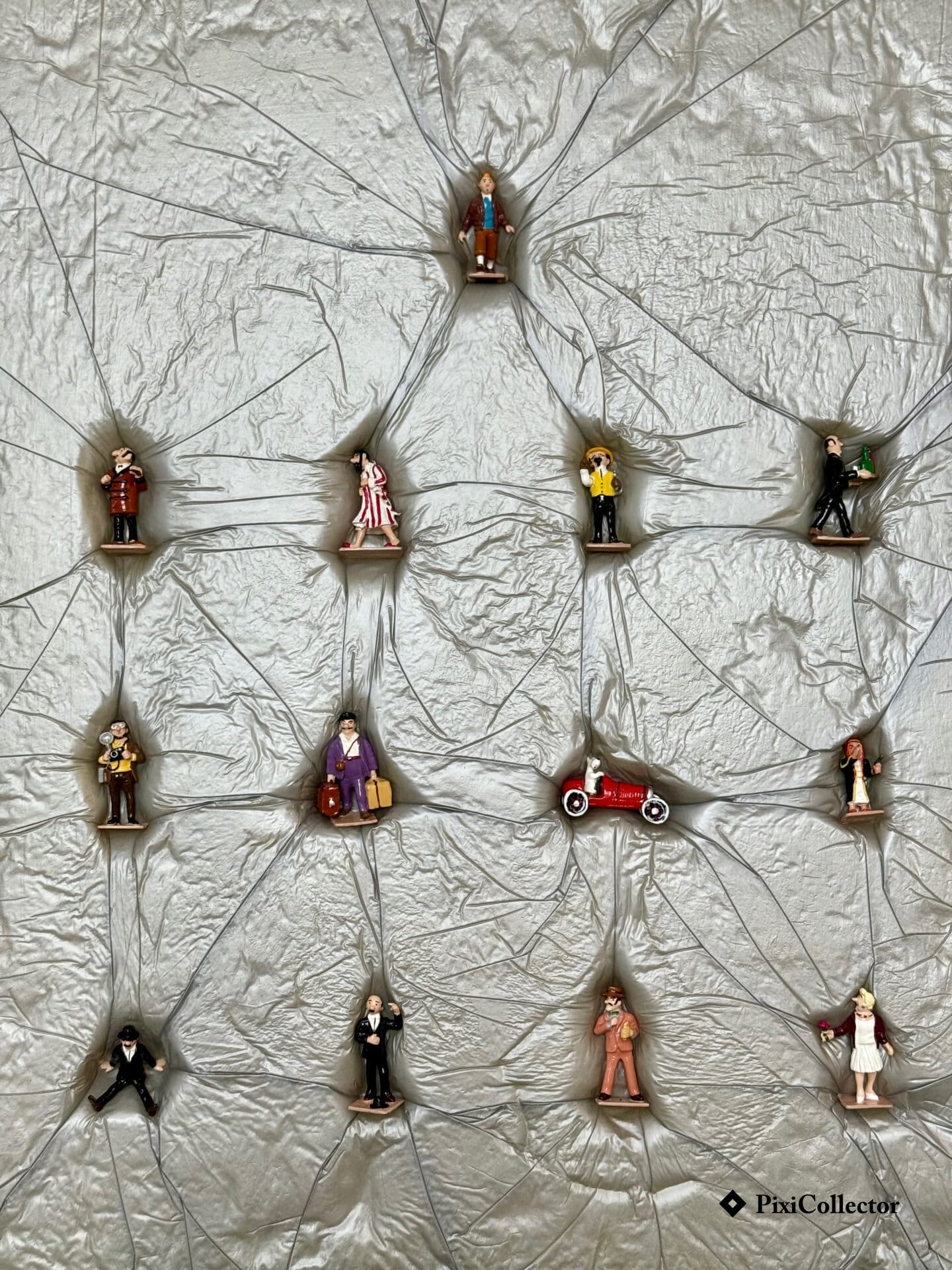 Cette composition évoque l’univers de Tintin avec un décor central et plusieurs personnages associés, pour une mise en scène cohérente.