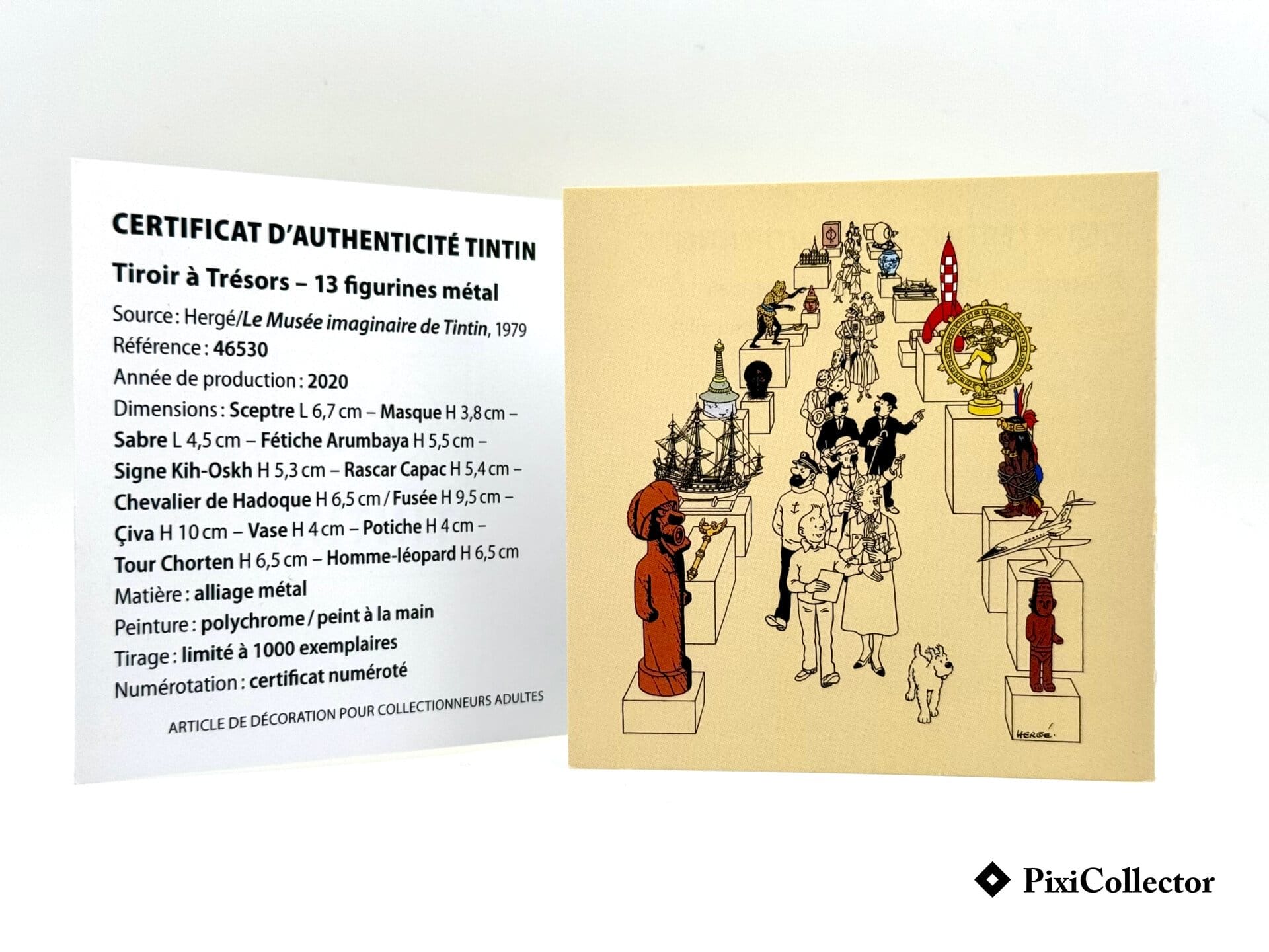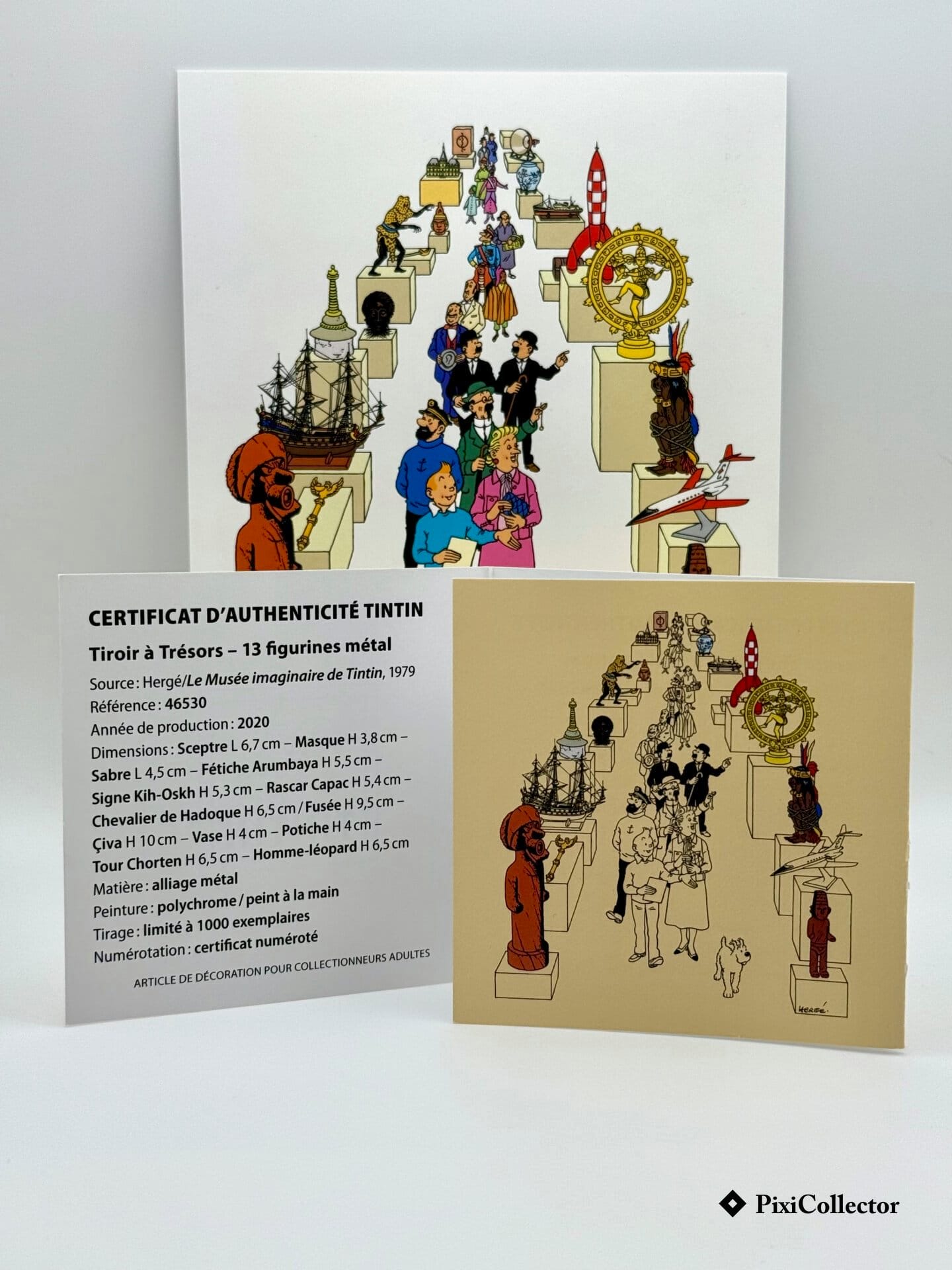 Ce coffret Pixi rassemble des pièces du « Musée Imaginaire », une présentation pensée pour le collectionneur, dans une lecture patrimoniale de l’univers « Tintin ».