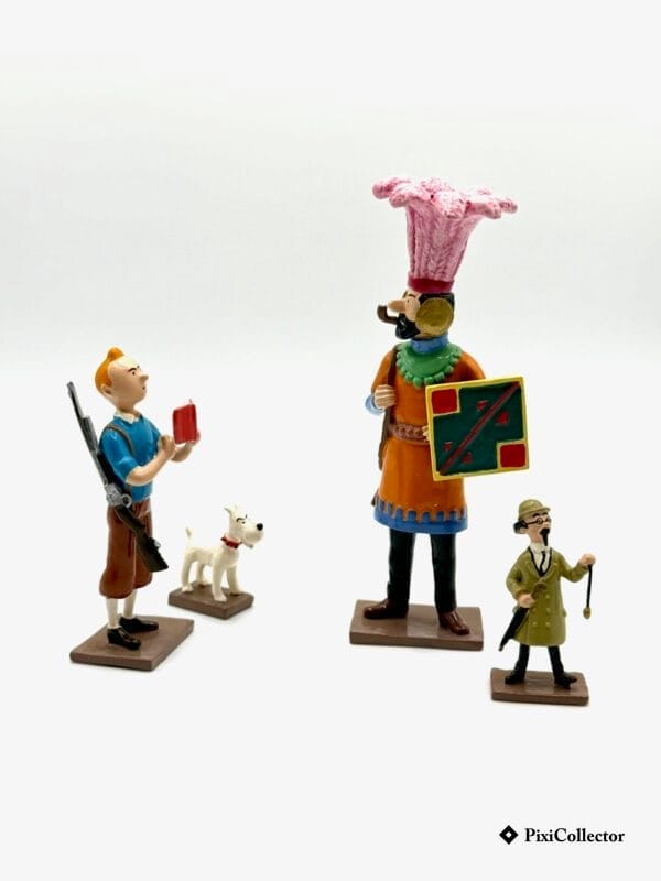 Inspirée des aventures de Tintin, cette figurine, tirée de la série « Rêves et Cauchemars », met en scène quatre personnages créé par Hergé : Tintin, Milou, Capitaine Haddock et Professeur Tournesol.