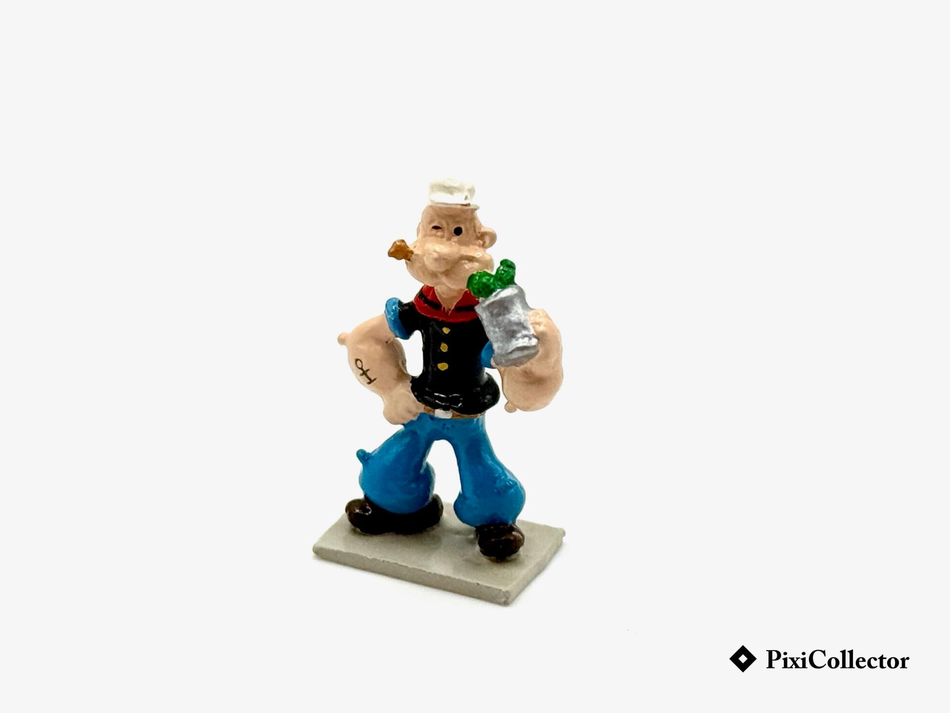 Cette figurine Pixi représente Popeye dans une mise en scène inspirée de différents héros cultes de la bande dessinée et du dessin animé dans la collection Mini : Héros de BD.