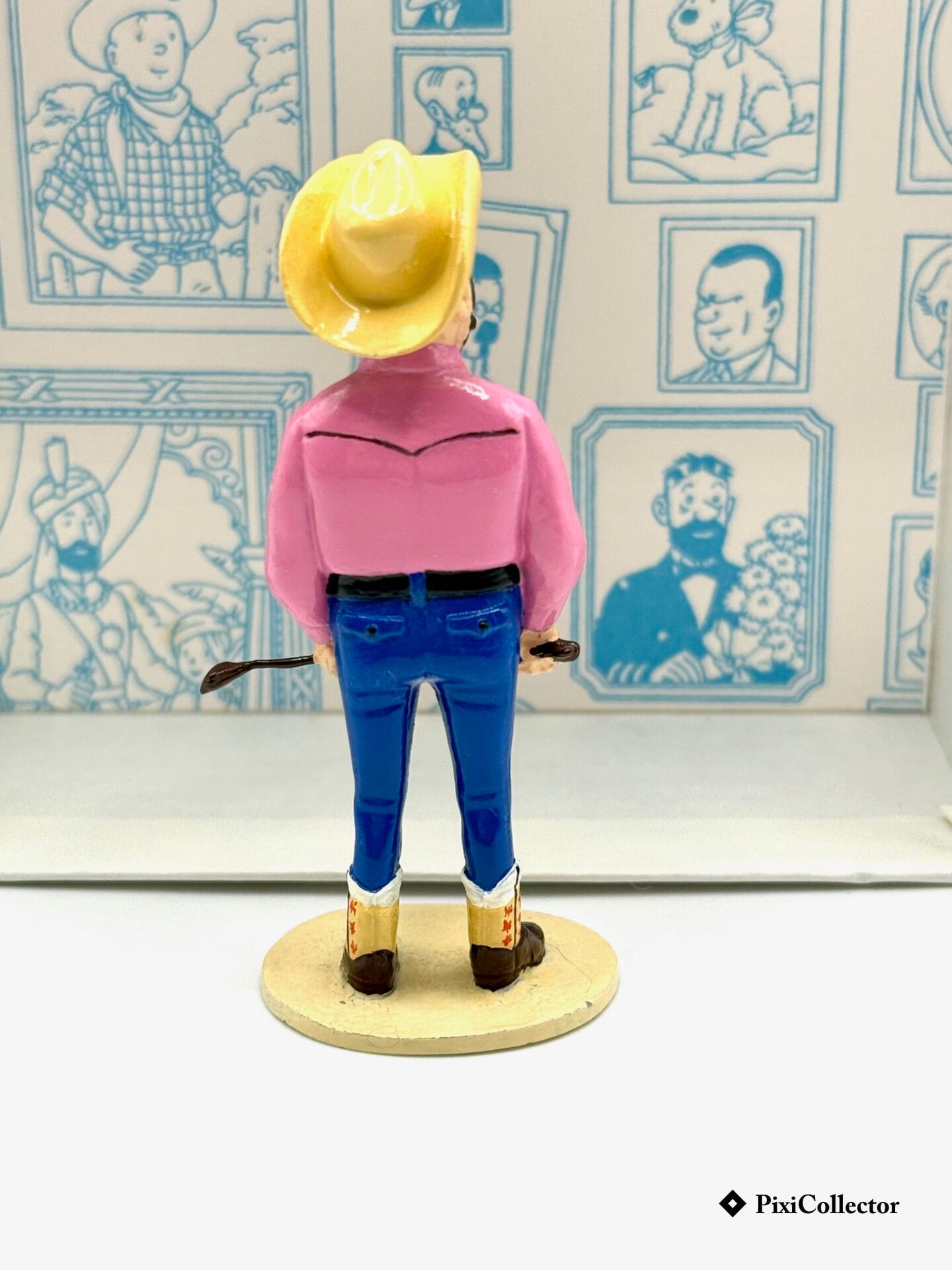 Cette figurine Pixi représente Rastapopoulos qui s’aprète à prendre son vol, dans une mise en scène inspirée de l’univers de Tintin créé par Hergé.