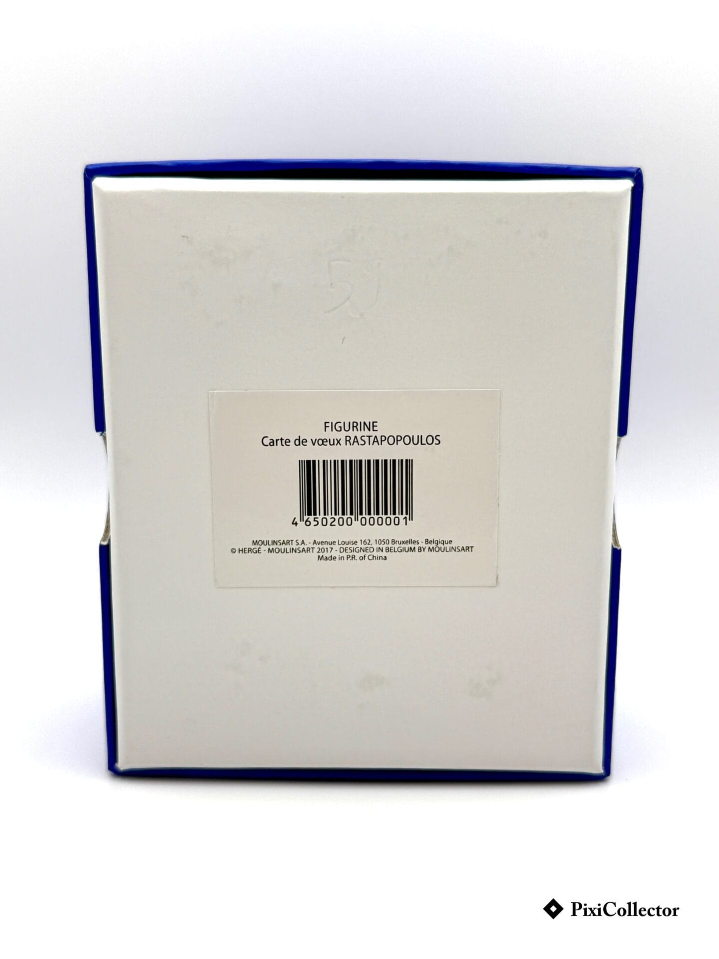 Cette figurine Pixi représente le redoutable Rastapopoulos, grand adversaire de Tintin, dans une mise en scène directement inspirée de la carte de vœux dessinée par Hergé au début des années 70.